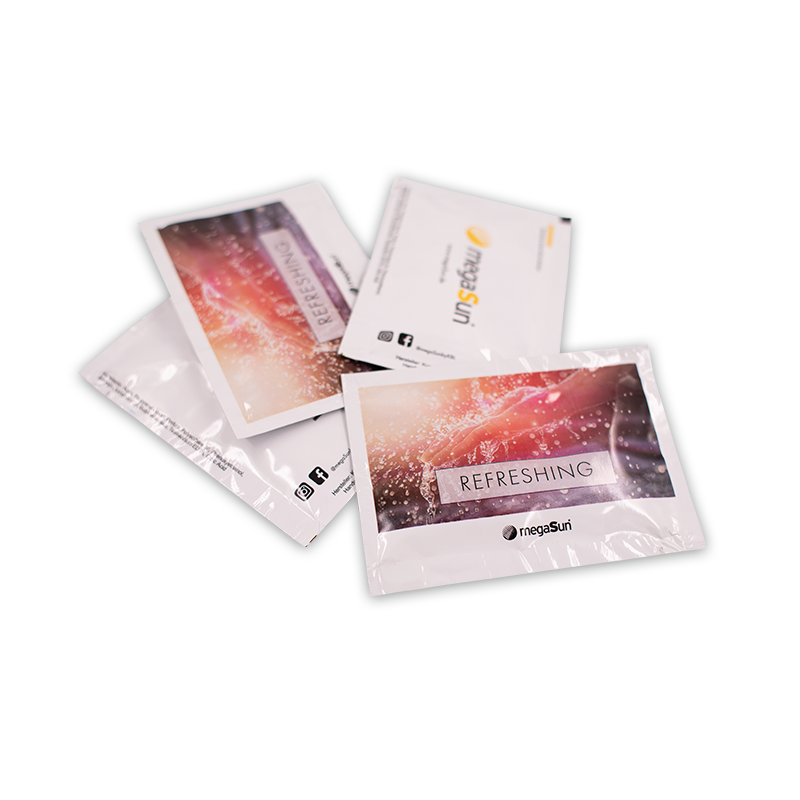 Erfrischungstücher mit Aufdruck megaSun. VE: 100 Stück