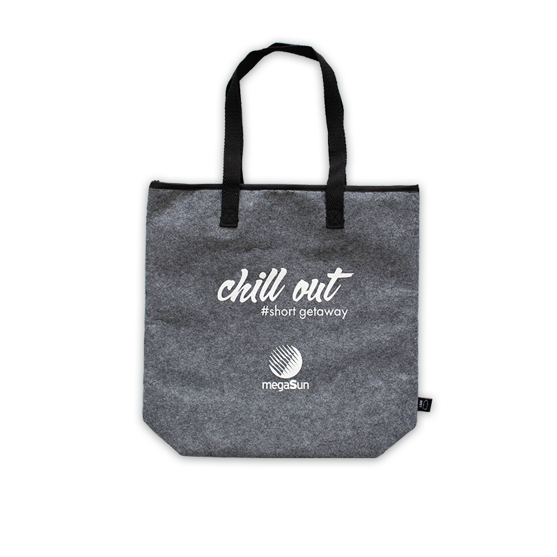 "Chill out #short getaway"- und "megaSun"-Druck auf der Vorderseite.