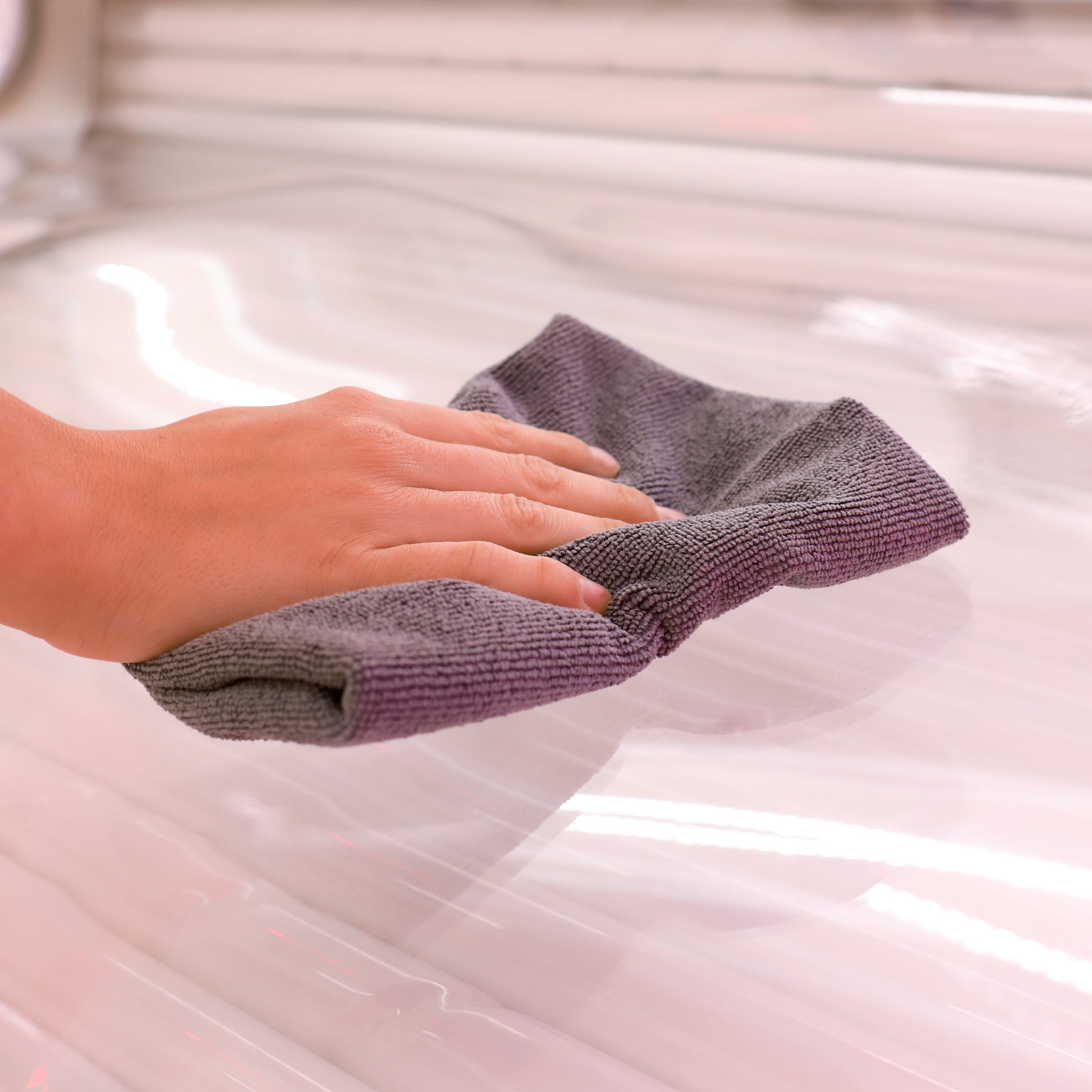 Mircrofasertuch grau zum Reinigen von Solarien.